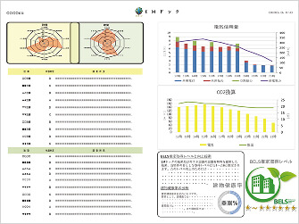「EMドック」の調査結果は、Enchanted in 1 Minute(1分で魅了する)をコンセプトに、1枚のシートで見やすく、分かりやすくまとめます。弊社独自の分析により建物の現時点でのBELSレベルを判定し、向上に向けた適切な支援を行います。